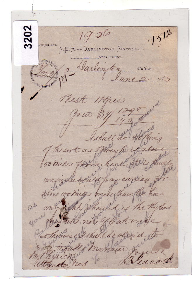 3202 Letter 1873 – Ex. Darlington Station Box 3A