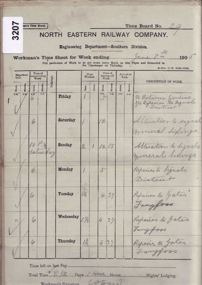 3207 Workmen’s Timesheets 1905 Selby Division Pt2 Box 3A