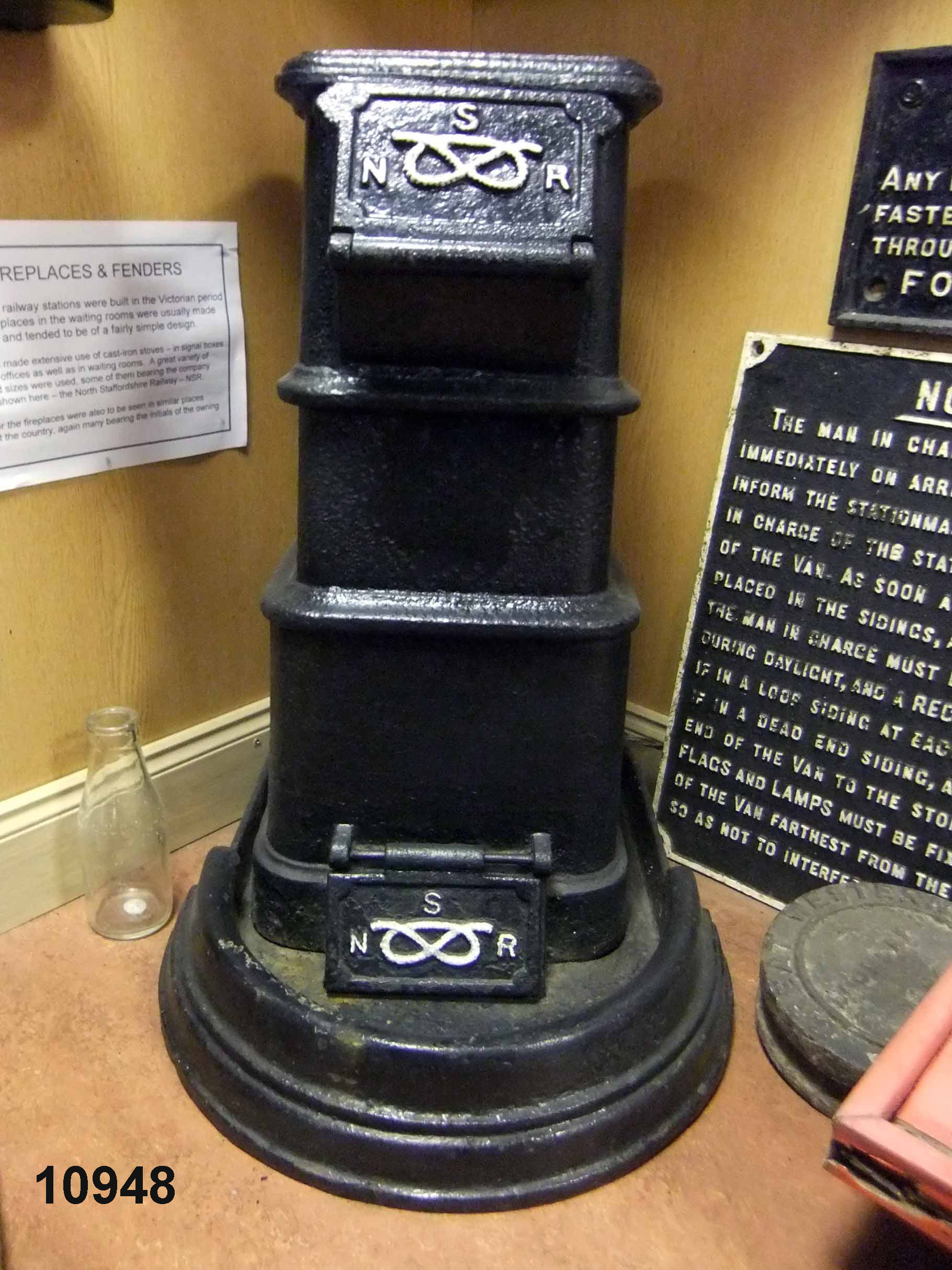 10948 Stove Black cast iron stove app. 3ft tall P3
