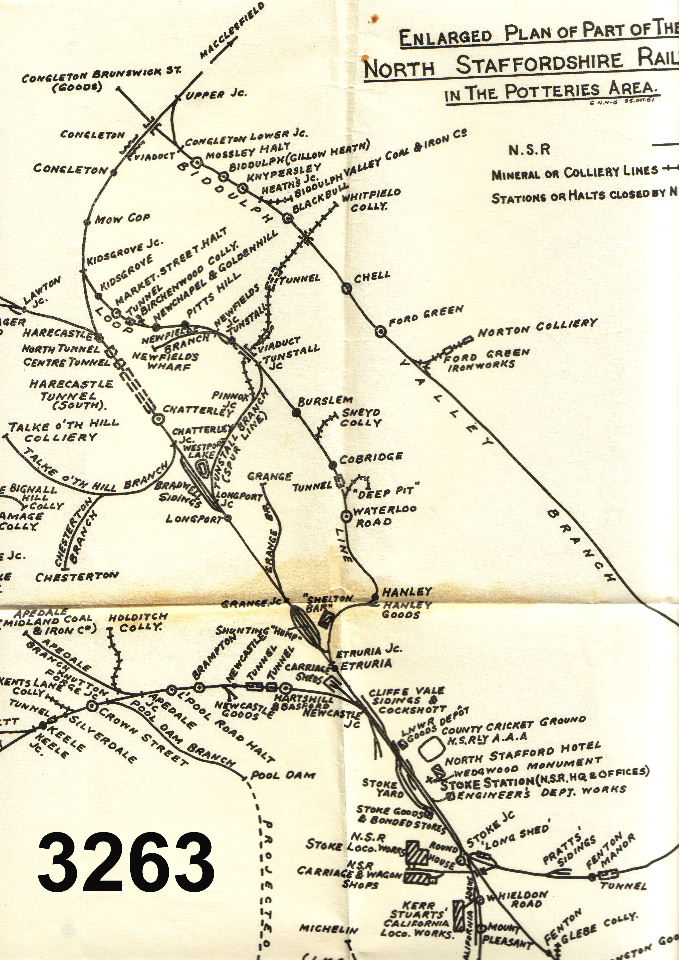 3263 Map Route map of lines in the Potteries area – 1951 Box 3B