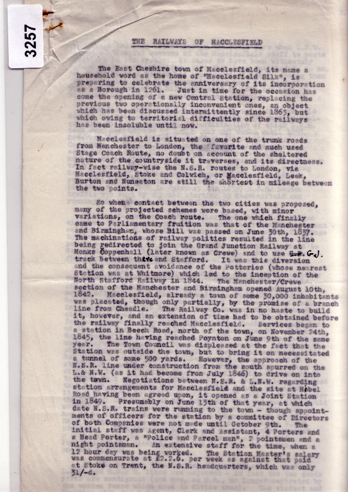 3257 Article Article about the railways of Macclesfield Box 3B