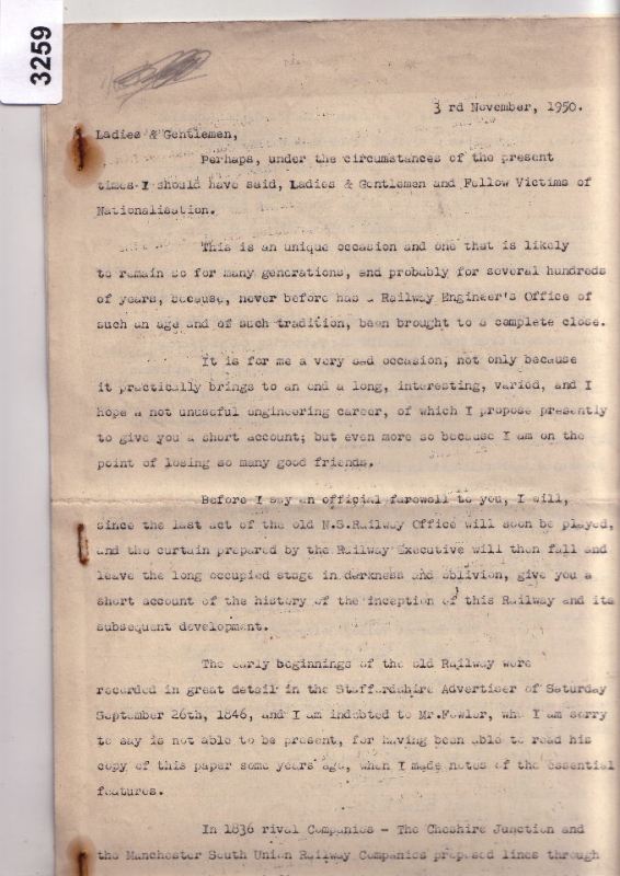 3259 Script 1950 – re Colsure of Engineers’ Office Box 3B