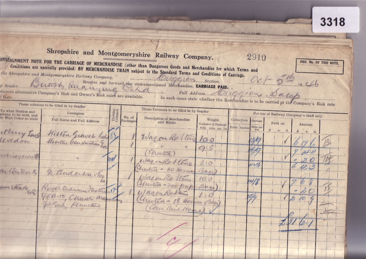 3318 Consignment Note 1946 – Various Box 3B