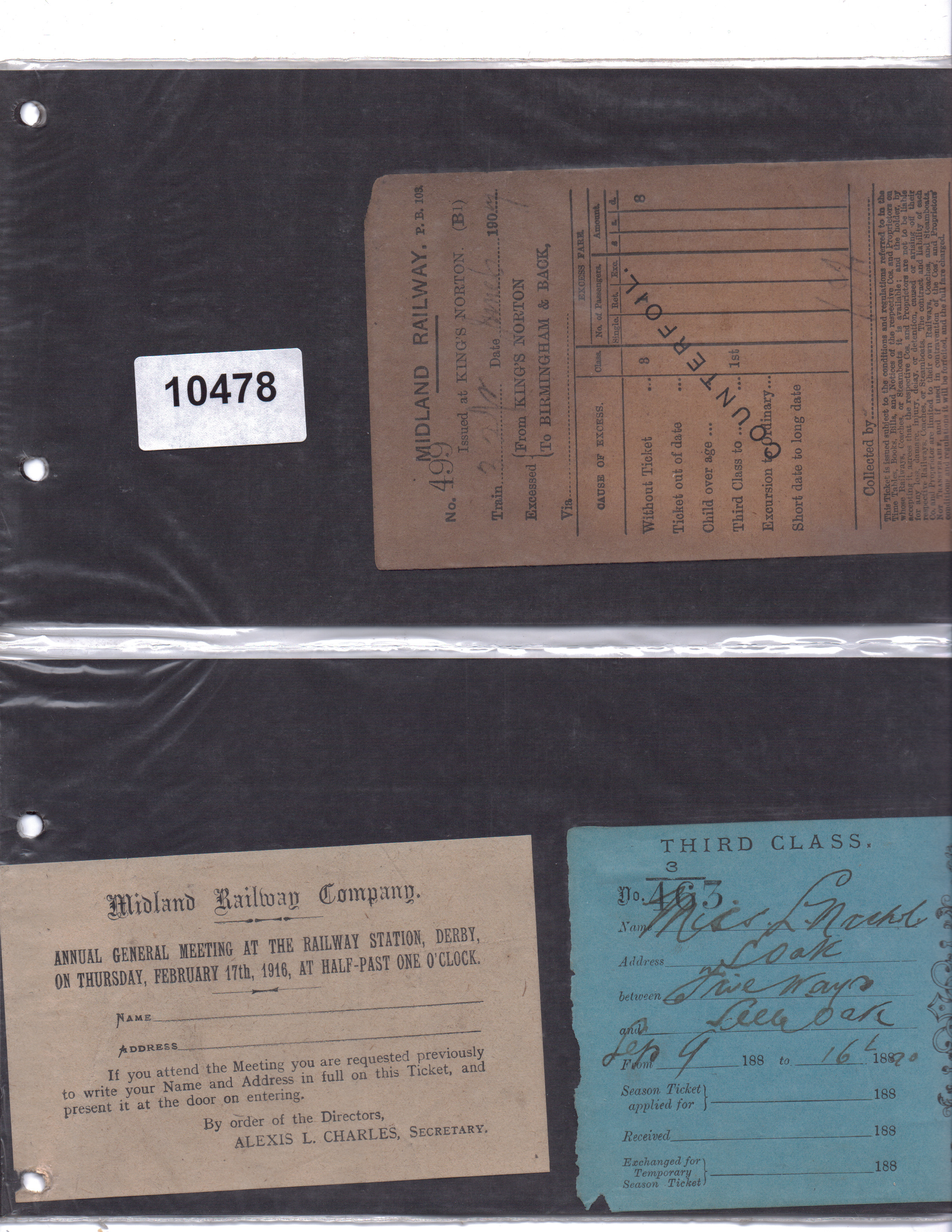 10478 Form Excess counterfoil, 3rd class ticket and Mid AGM Notice Arch File 9