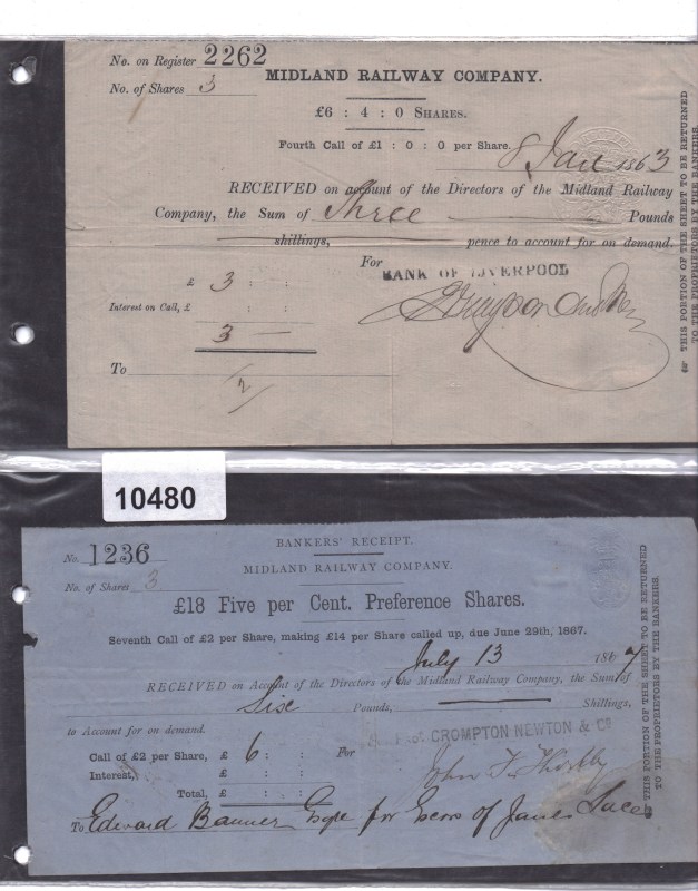 10480 Receipt 2 Bankers’ Receipts re Shares Arch File 9