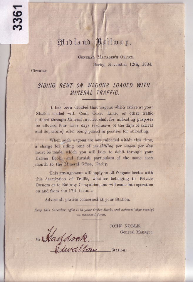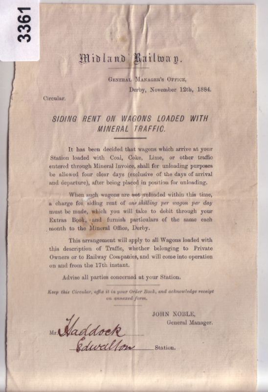 3361 Circular (Goods) 1884 – Siding rent Box 4