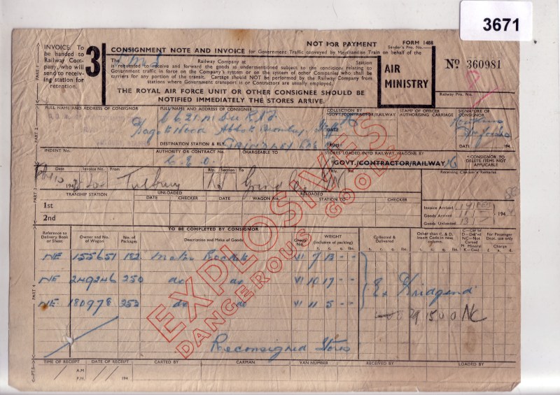 3671 Consignment Note 1945 Explosives from Tutbury Box 9