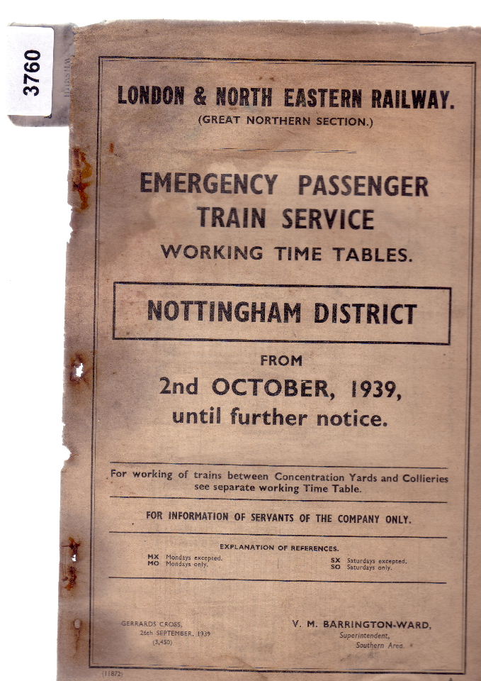 3760 Working Time Table 1939 – Nottingham District (Emergency) Box 10