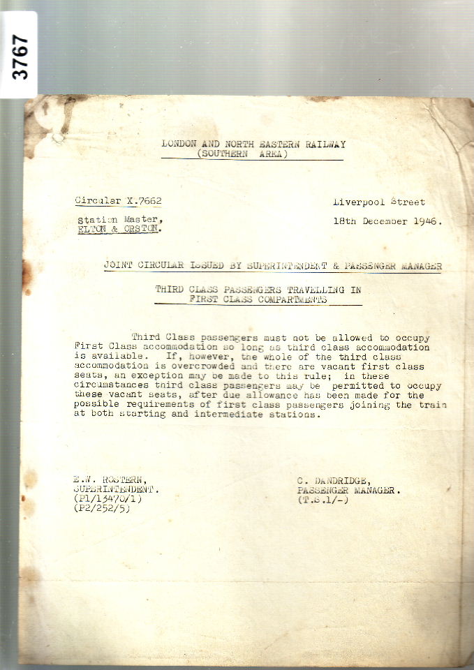 3767 Circular 1946 – Re Third Class Passengers Box 10
