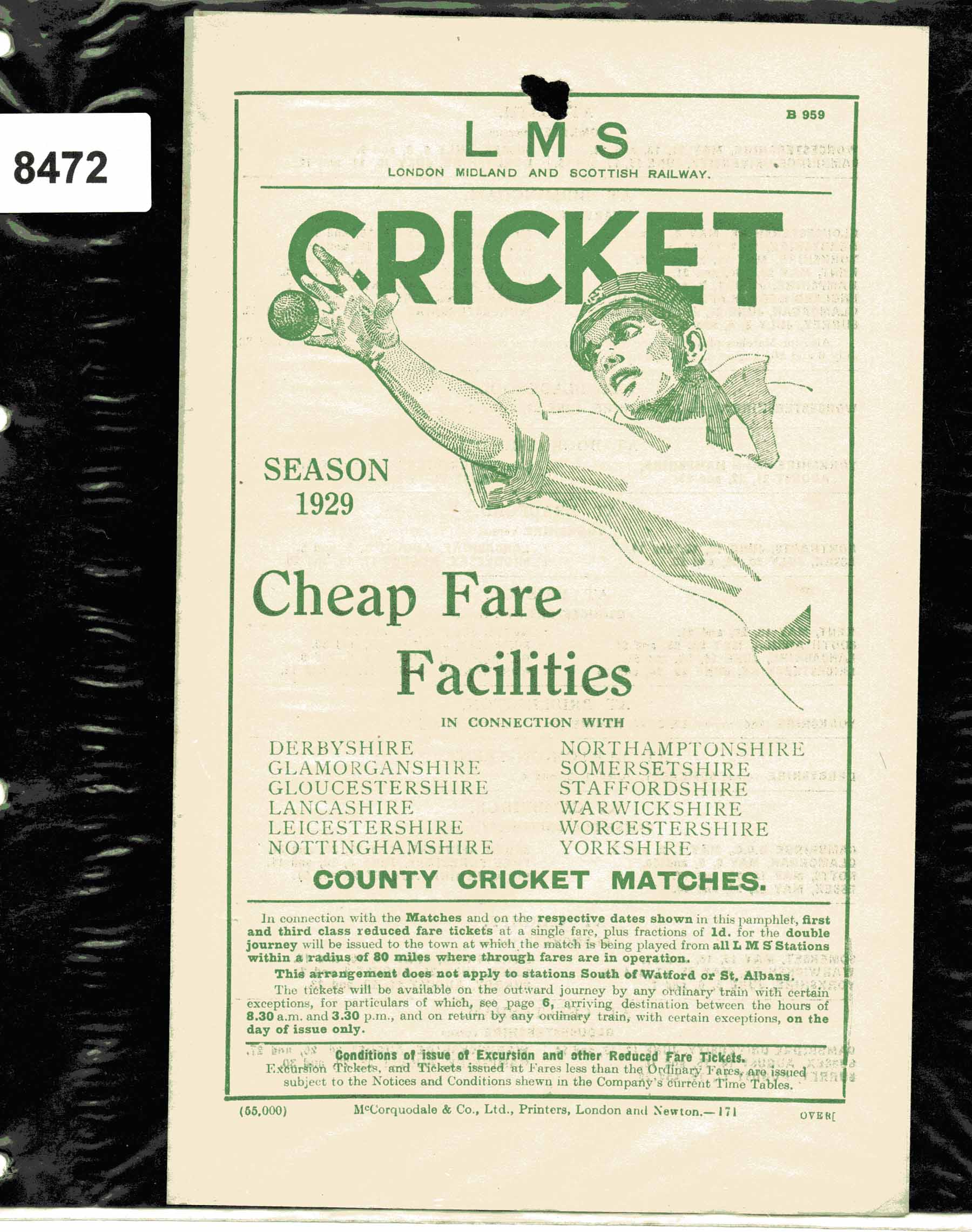 8472 Handbill 1929 – Cheap tickets to County Cricket Arch File 8