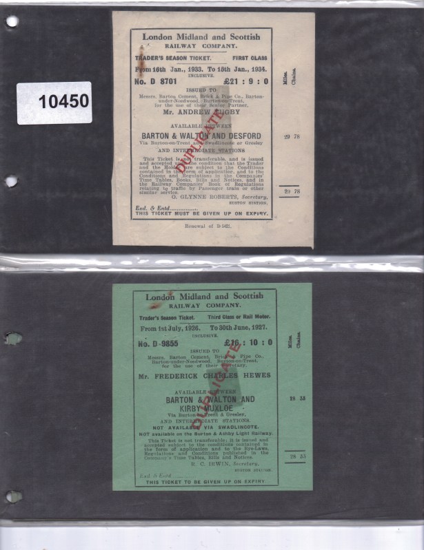 10450 Ticket 2 – Duplicate Season Tickets – 1 first class & 1 third Arch File 9