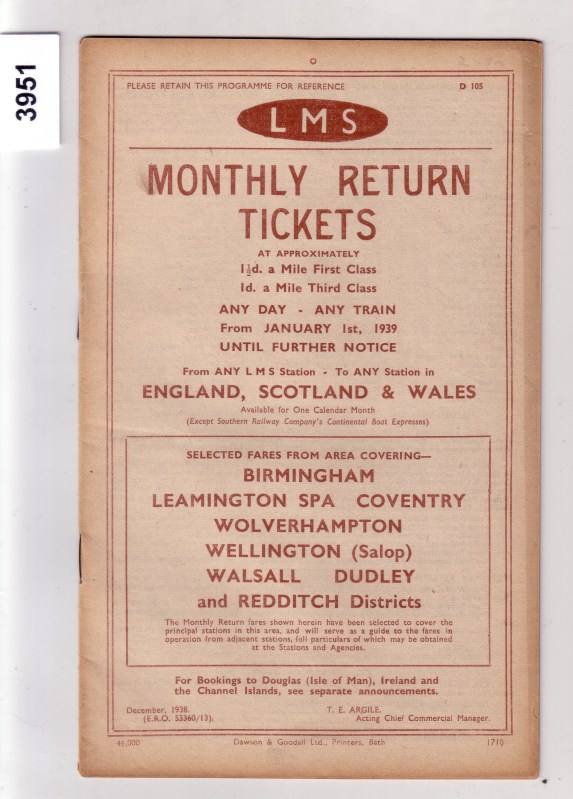 3951 Booklet 1939 – Monthly Return Tickets Box 11