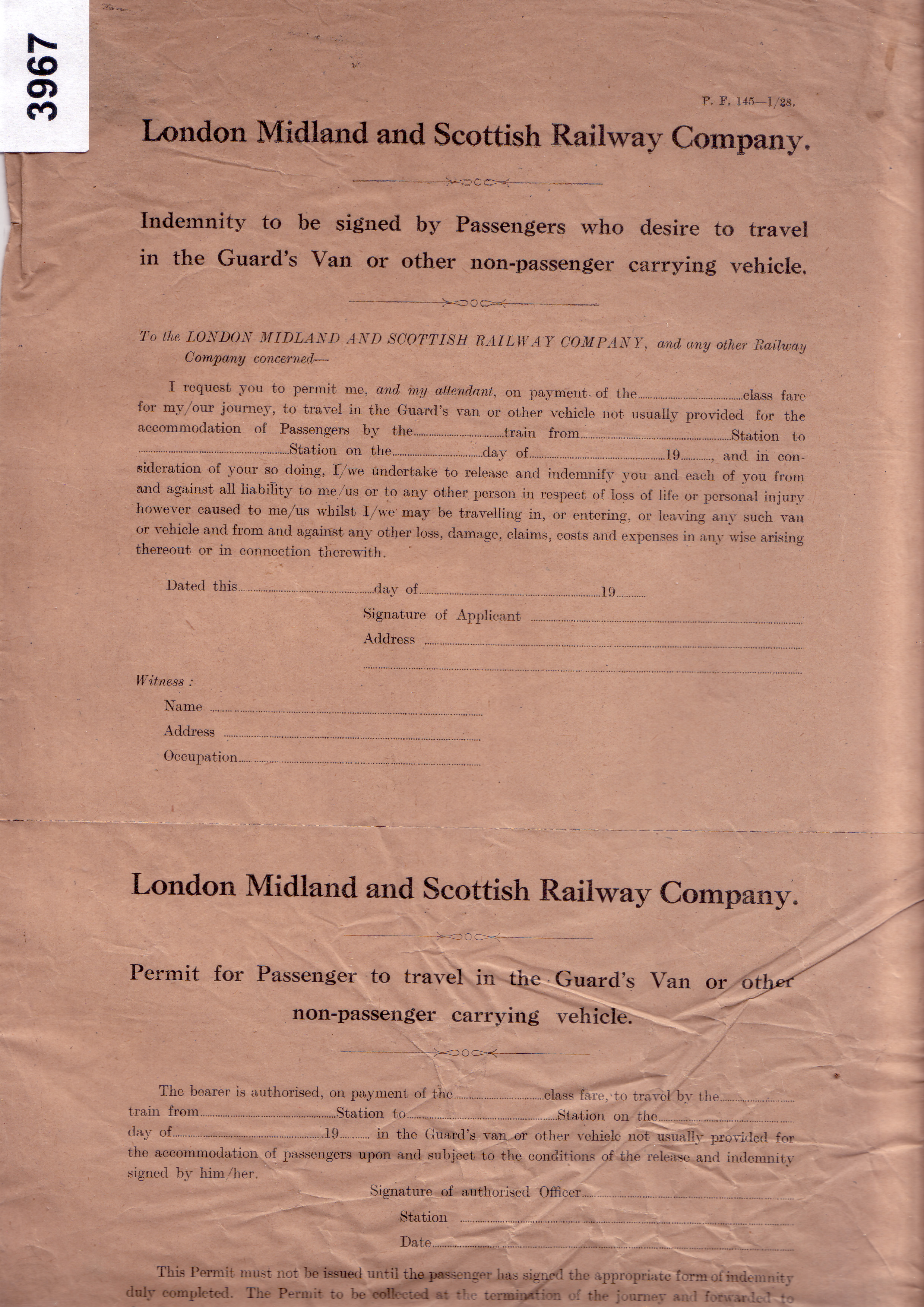 3967 Indemnity Re Travel in Guard’s van Box 11