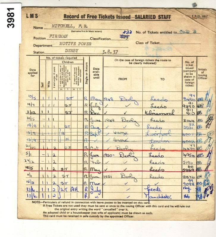 3981 Record 1948 – Record of free ticket issued – F.R.Mitchell Box 11