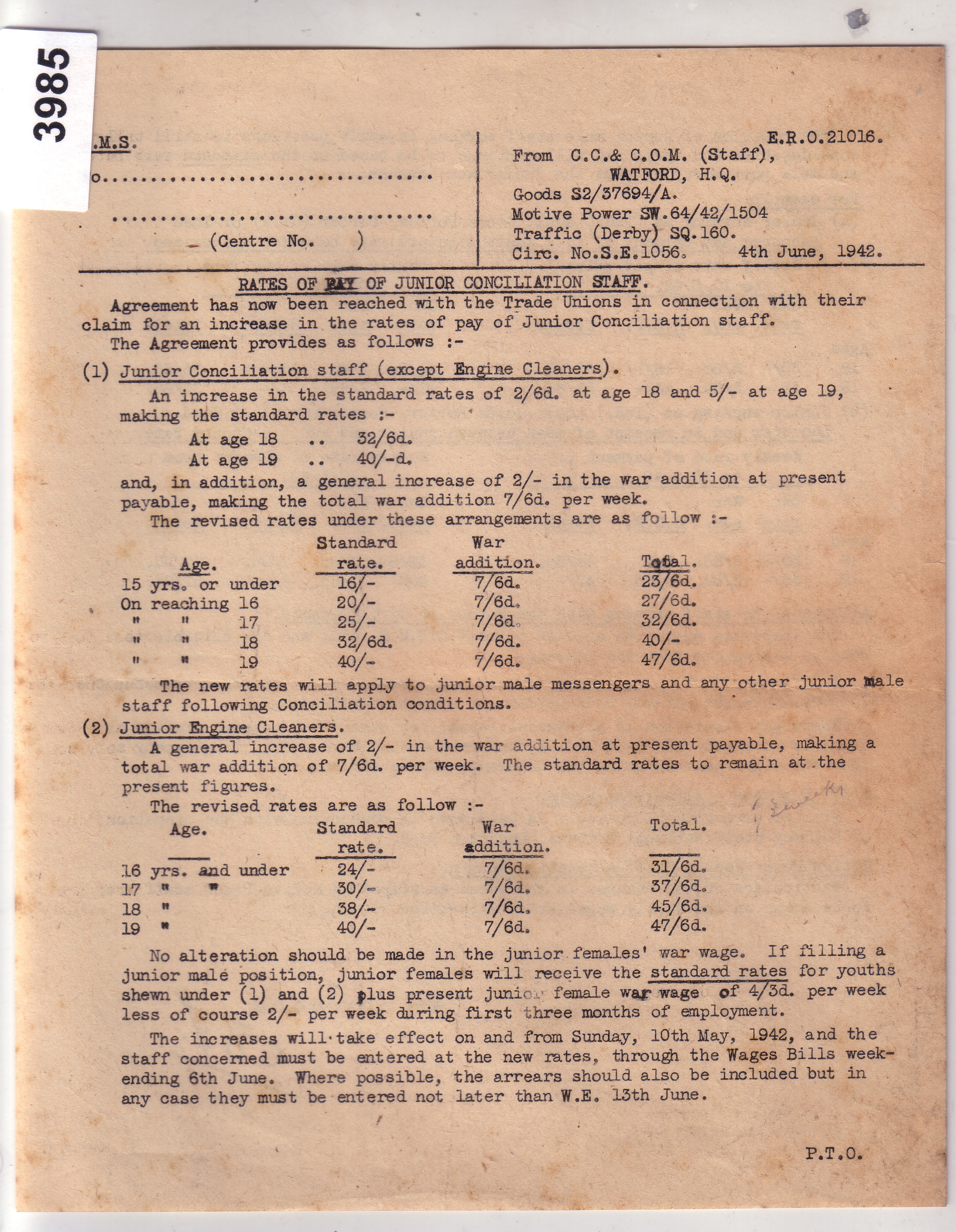 3985 Circular 1942 – Rates of Pay – Junior Staff Box 11