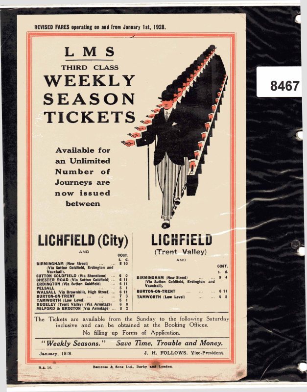 8467 Handbill 1928 – Weekly Season Tickets, B-ham – Lichfield Arch File 8