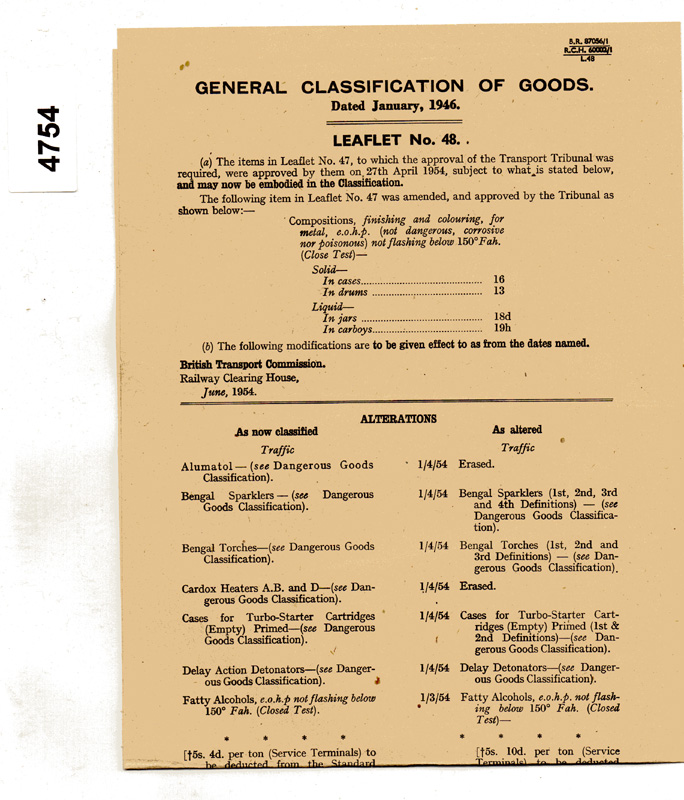 4754 Leaflet 1954 – General Classification of Goods Box 28