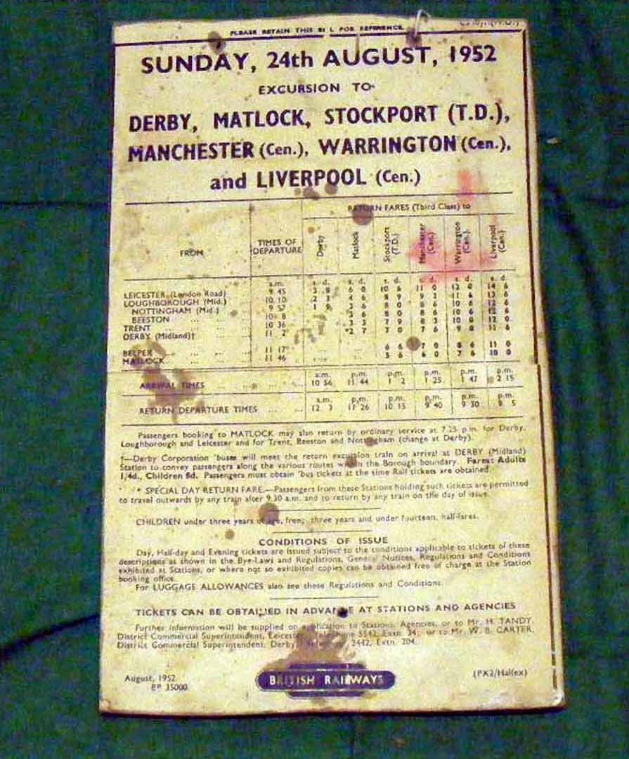 247 Timetable poster Sunday 24 Aug 1952 excursion Derby… R4.S3