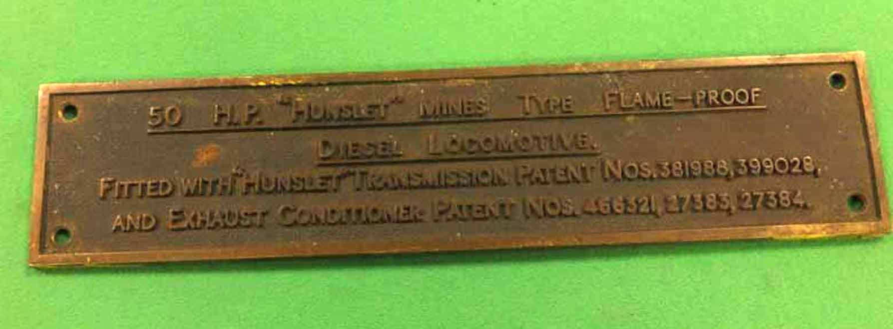 10709 Manufacturer’s plate 10.4″x 2.3″ 50hp Mines Type Diesel Loco HE2019 C16
