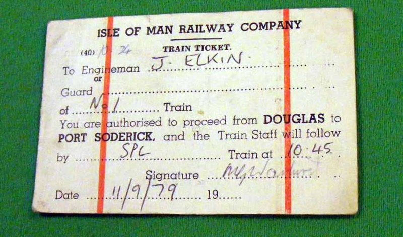 1575 Train Staff Ticket Douglas to Port Soderick 11-9-1979 C7