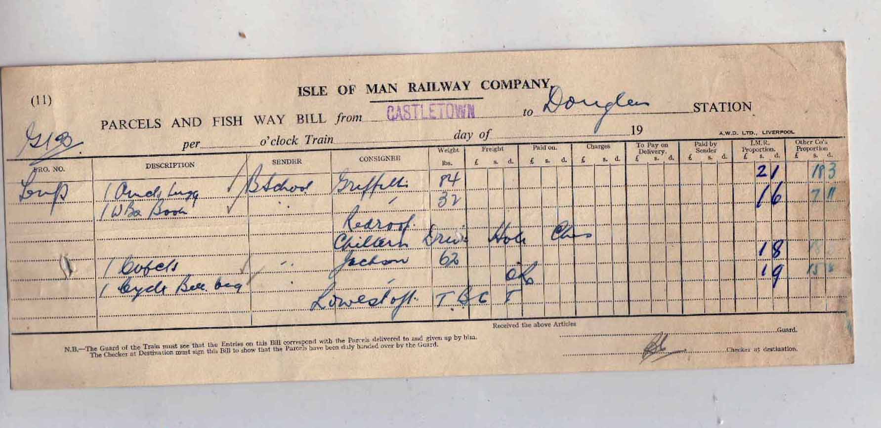 3079 Way Bill 19– Parcels & Fish Way Bill, Castletown to Douglas Box 3A