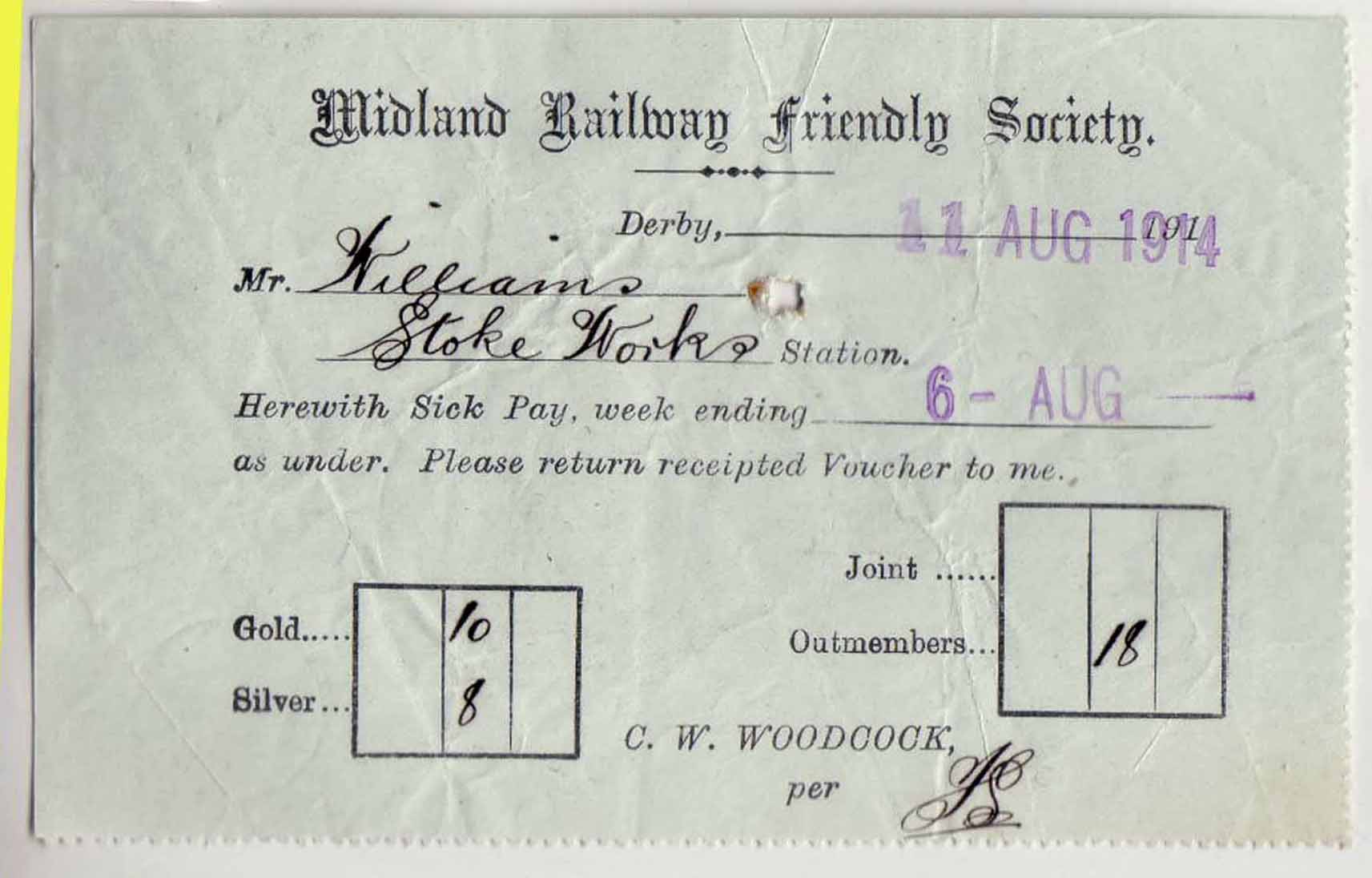 3395 Voucher 1914 – Midland Railway Friendly Society sick pay voucher Box 4