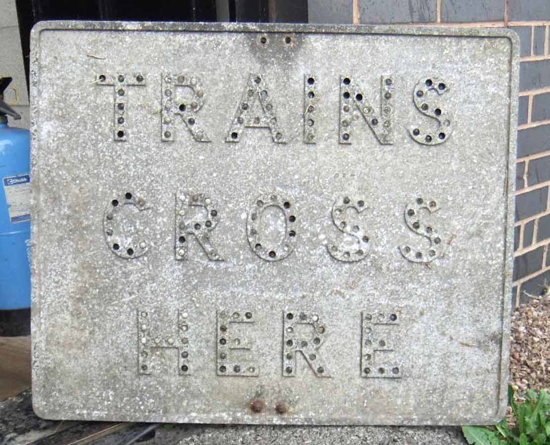 1748 Warning sign ‘Trains Cross Here’ NCB Upstairs