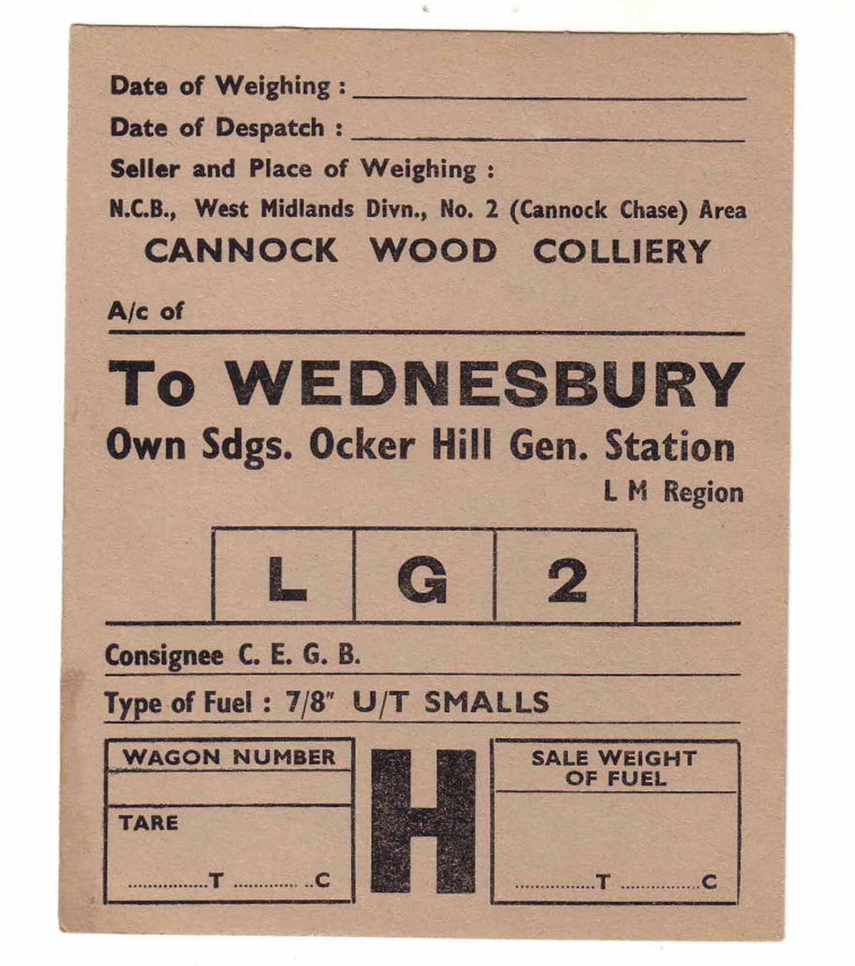 1224 Wagon Label Cannock Wood to Wednesbury NCB – Cannock Wood Colliery C8