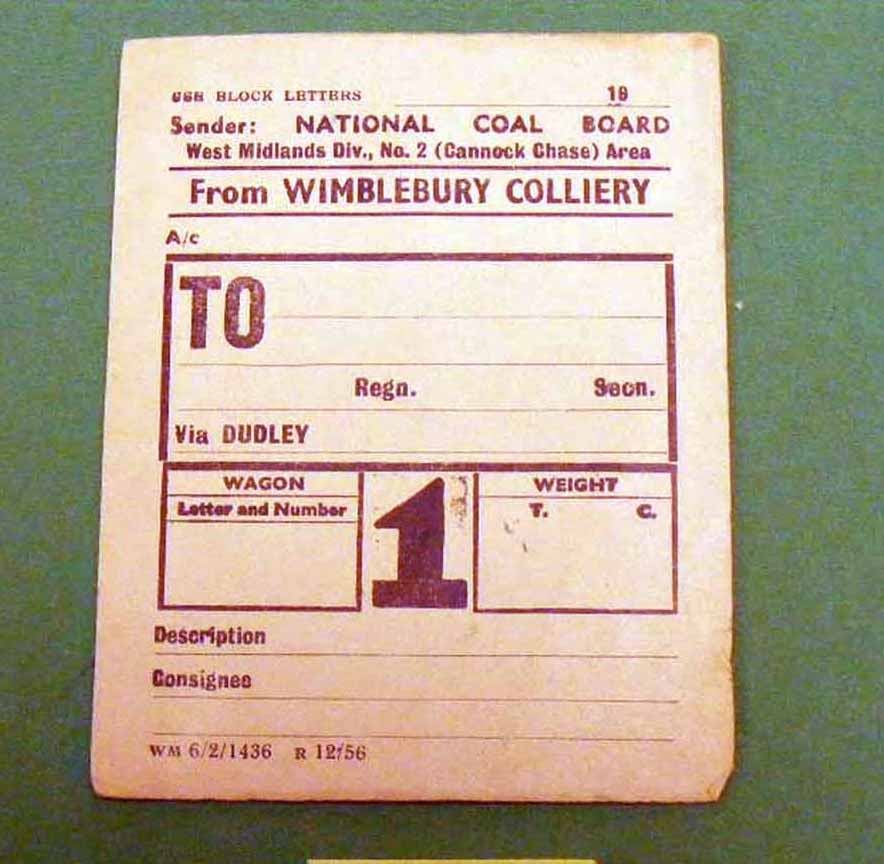 1426 Wagon Label From Wimblebury Colliery NCB C15