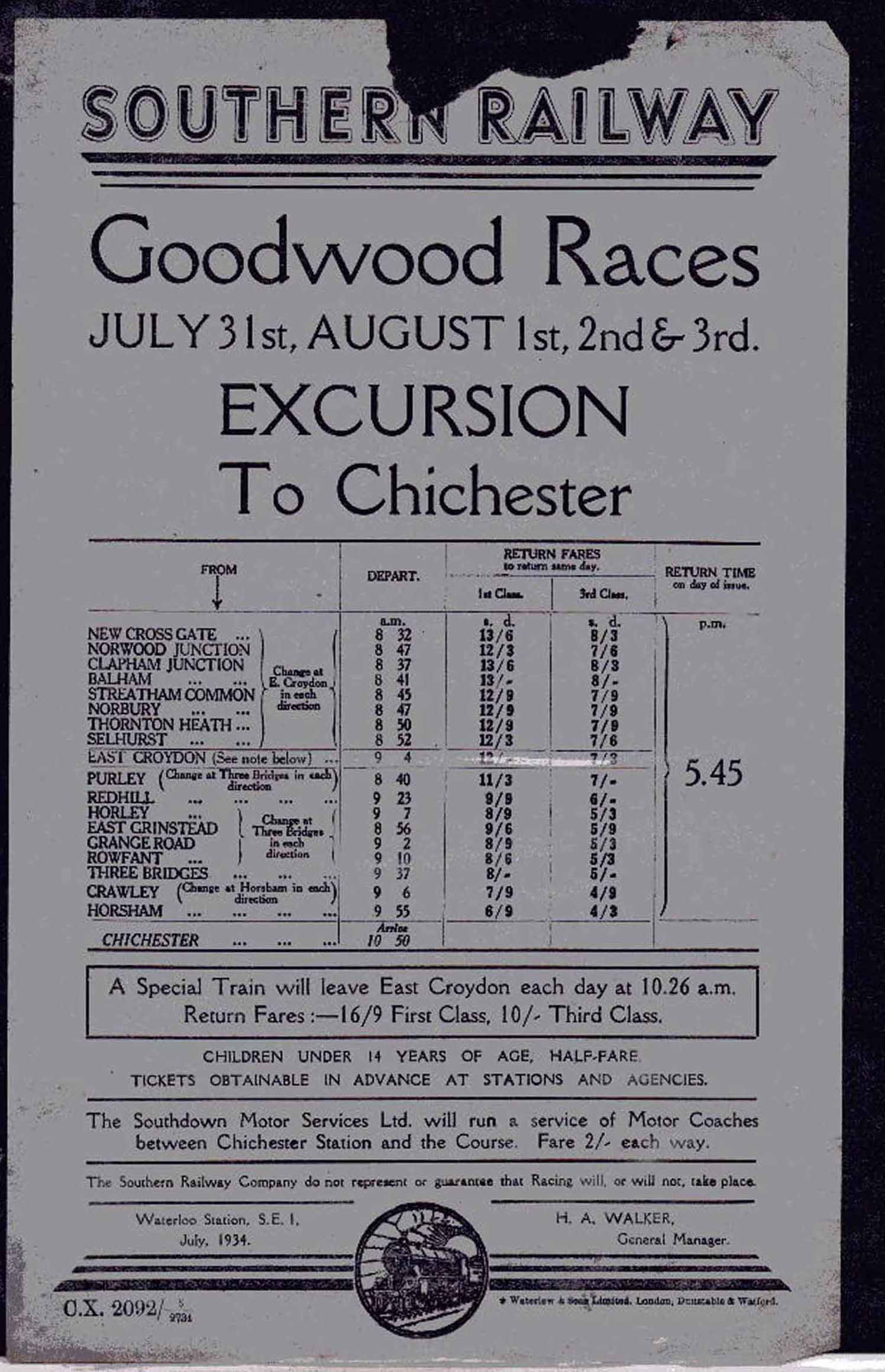 8462 Handbill 1934 – Excursion to Chichester, Goodwood Races Arch File 8