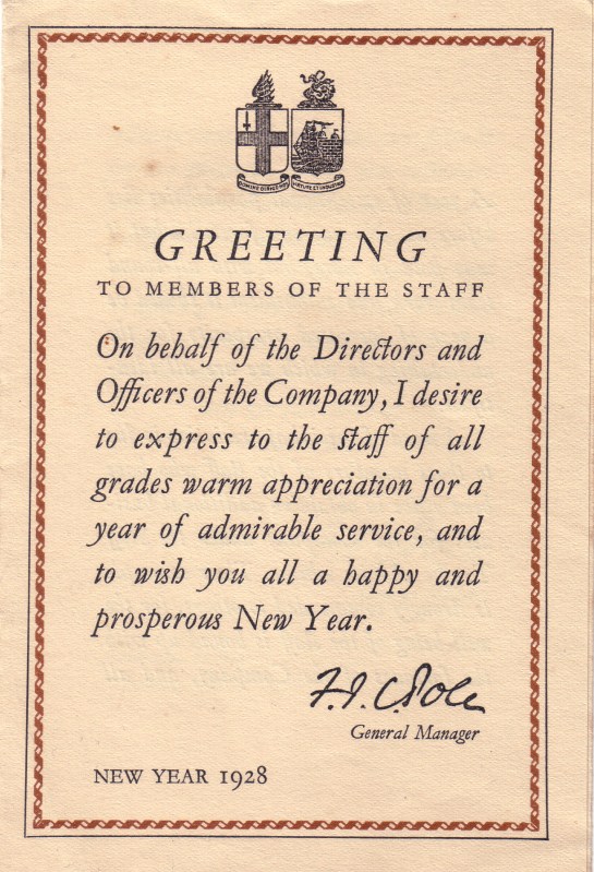 1394 Greeting Card 1928 – GWR New Year Card to all staff members 10341