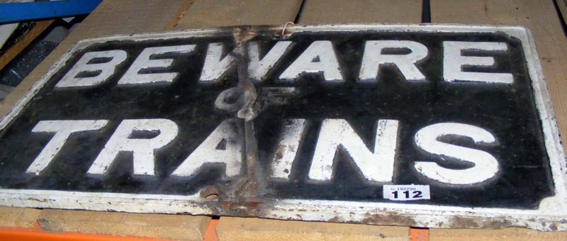 112 Railway warning sign GWR Beware of Trains GWR R5.B2.S2