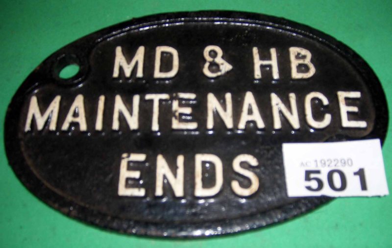 501 Oval Plate ‘MD and HB maintenance ends’ LNW W1