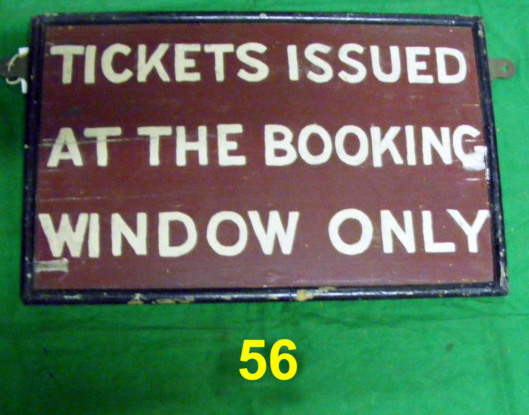 56 Station instructional sign ‘Tickets issued at the Booking Office window only’ BR R4.S2