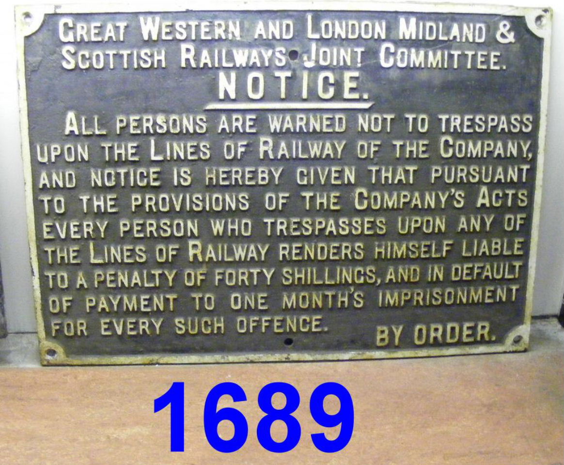 1689 Warning notice No trespassing GWR/LMS Joint Committee GWR/LMS Joint Committee U2