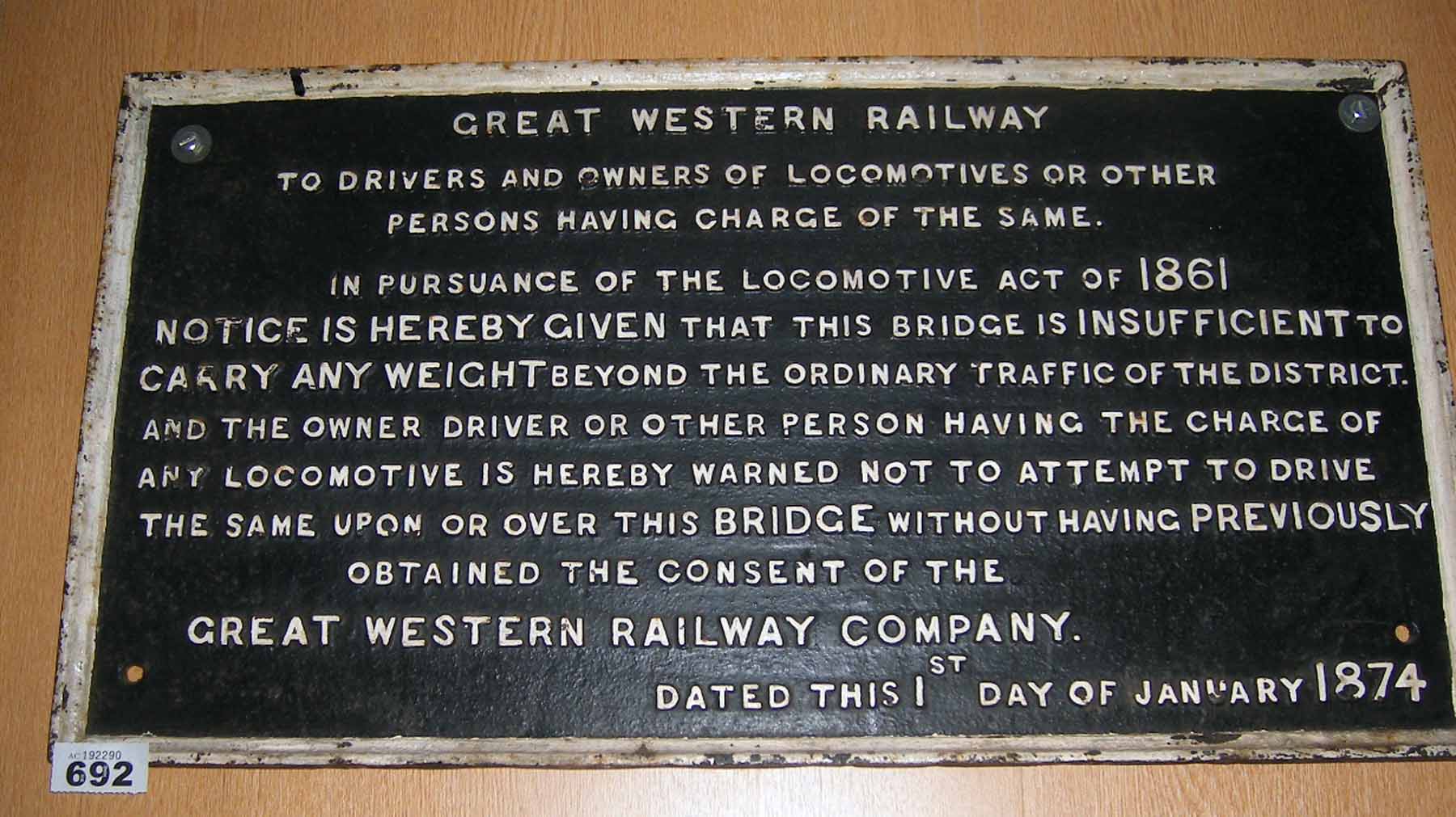 692 Warning notice Bridge weight restriction GWR W3