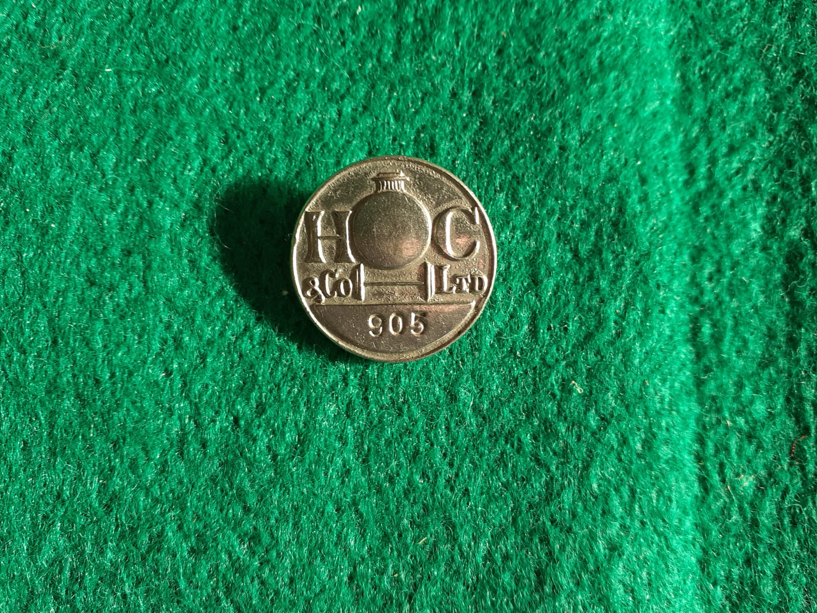 An association had been formed with a Yorkshire company, Blackburn Aircraft in 1938 when war loomed and eventually over a 1000 men and woman were engaged at Hudswell Clark in the war effort building sub assemblies. Locomotive work continued including the production of 50 austerity 0 6 0 saddle tanks for the War Department plus others of various types for industrial use. Employees were issued with a bright metal button hole badge just a fraction less than an inch in diameter featuring a simple front view of a locomotive with the initials H C on each side also &Co Ltd with the employees works number stamped underneath. The example acquired for the Chasewater Railway museum is number 905.