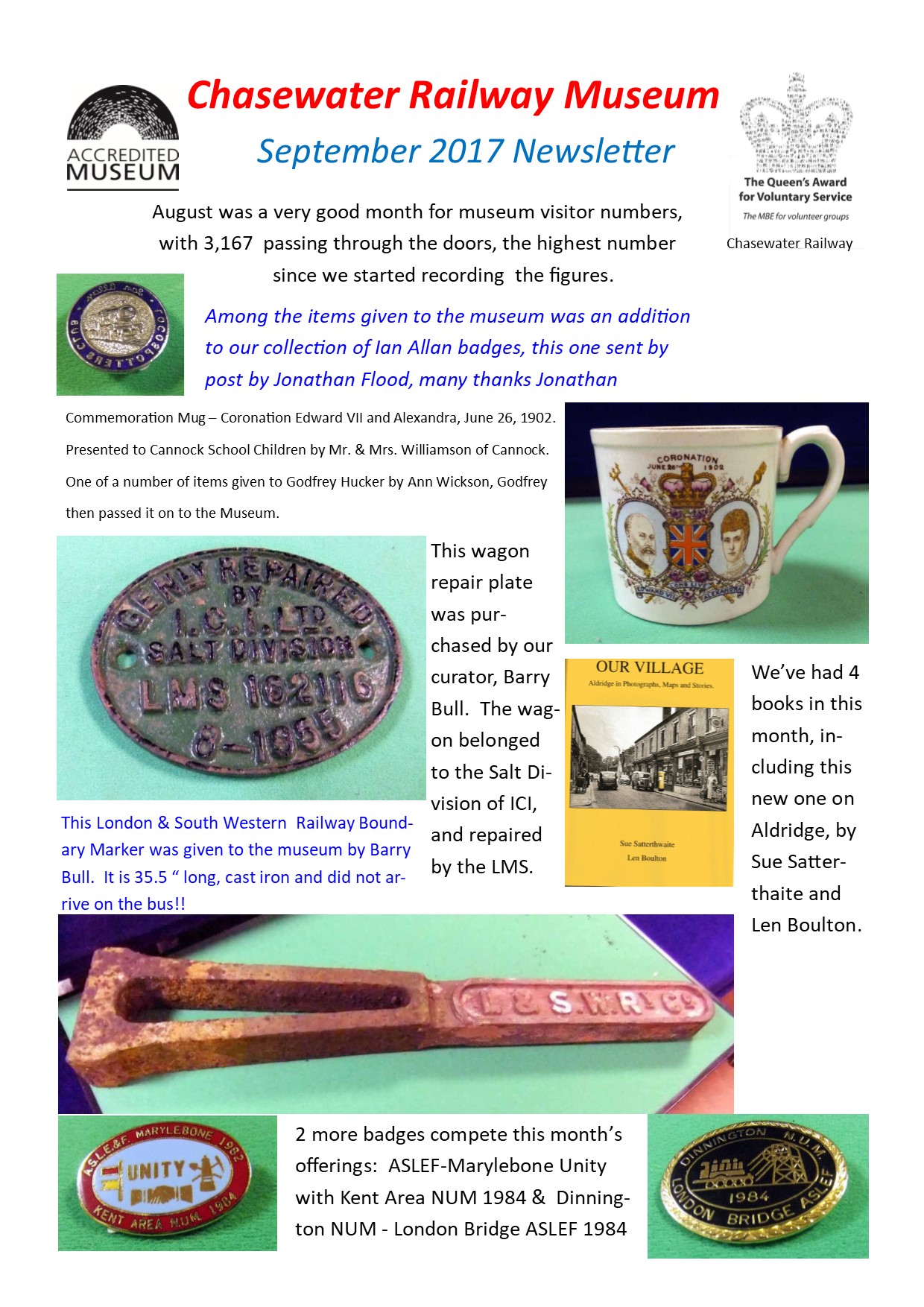 Each district will, inevitably, form its own collection of smaller relics which eventually we hope to show to the public in exchange for money. As a railway enthusiast, a mass of cast iron plates, old faded photographs, tattered maps, dog-eared tickets and general bric-a-brac fascinates me and I can spend hours contemplating such a collection, but I would strongly suspect this would leave the general public with a feeling of mental indigestion and a fixed idea that railway enthusiasts are really mad.
