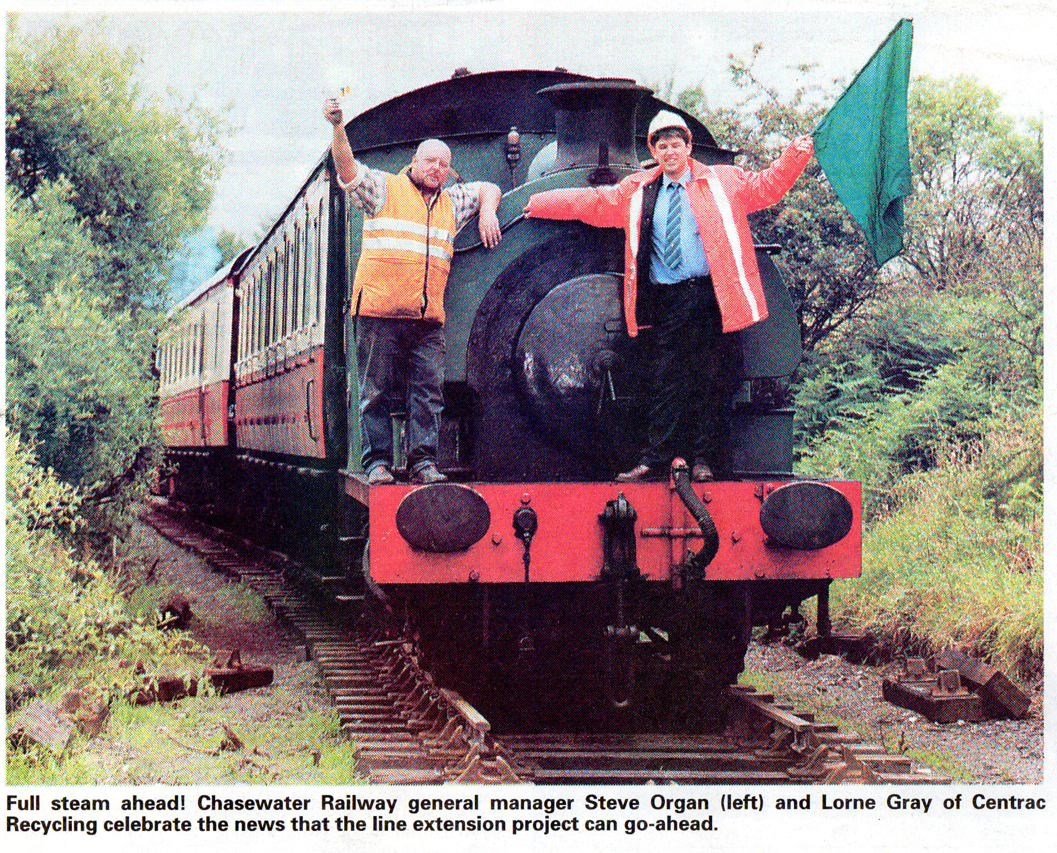 This is the largest donation of its kind that Chasewater has received and is mostly due to the efforts of Jim Bates, and employee of Synthetic Chemicals and a long-standing member of the standard gauge metals railway. He found that the sidings were to be dismantled, approached his works manager on behalf of Chasewater and together with officials from the railway, obtained the track.