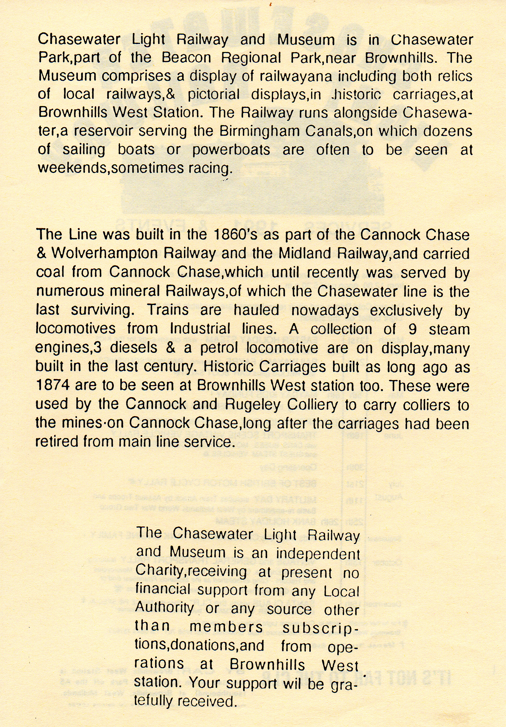 Chasewater Railway Museum – A 1991 Flyer for the Railway