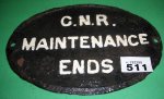 - 511 Oval sign ‘Maintenance ends’ GNR From Stafford to Uttoxeter line W1