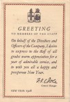 - 1394 Greeting Card 1928 – GWR New Year Card to all staff members 10341