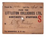 - 10870 Wagon Label Littleton Colliery to Church Stretton 10346