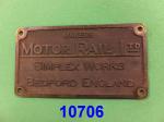 - 10706 Manufacturer’s plate 5.5″x 3″ Loco 9543 on back Motor Rail Ltd Barry’s Bag