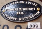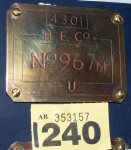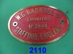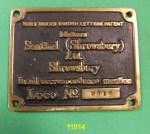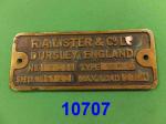 - 10712 Manufacturer’s plate 8″x 4″ Reconditioned 1952 Works No.S1326 Baguley C16