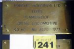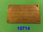 - 10708 Manufacturer’s plate 5.5″x 3″ Mines Loco Type EM64hp Hudswell Clarke C11