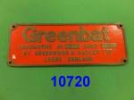 - 10720 Manufacturer’s plate 11.5″x 4.2″ 1961 Greenbat 6061 Greenwood & Batley Ltd Barry’s Bag