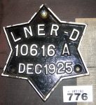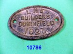 - 10786 Wagon plate 1927 – 6.5″x 4.375″ oval Wagon or Parcel Van Plate LNE Dukinfield C18