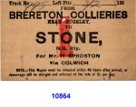 - 10864 Wagon Label 1920s – Brereton Colls. to Stone NSR Brereton Collieries 10346