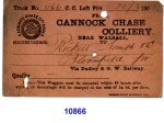 - 10866 Wagon Label 1900s Cannock Chase Coll to Bloomfield Fm Cannock Chase Colliery Company 10346